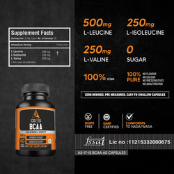 View full detailsBCAA Capsules. 100% PURE, UNADULTERATED: AS-IT-IS BCAA is a 100% vegetarian, unadulterated amino supplement that keeps an authentic single-ingr...