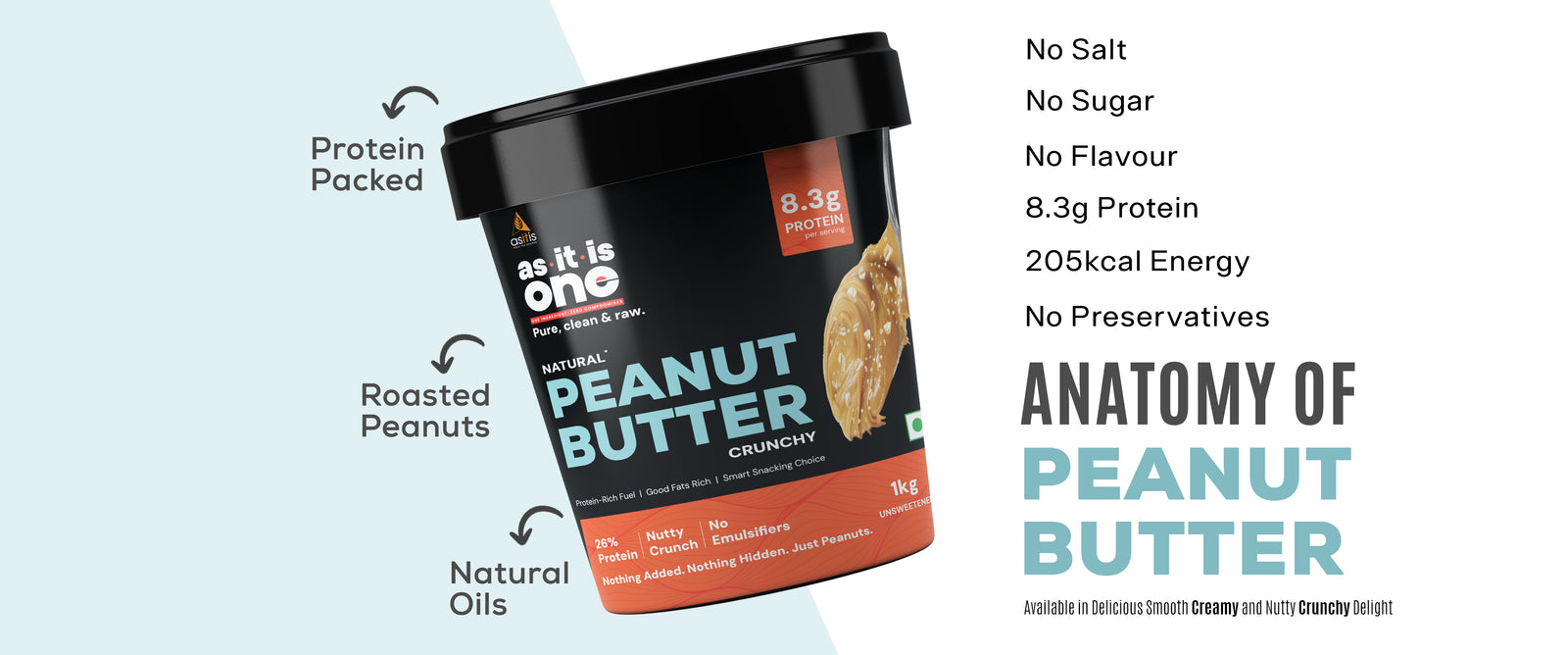 View full detailsPEANUT BUTTER PROTEIN 100% NATURAL, NO ADDED SUGAR: AS-IT-IS Peanut butter stands out on its commitment to using single ingredient – made from...