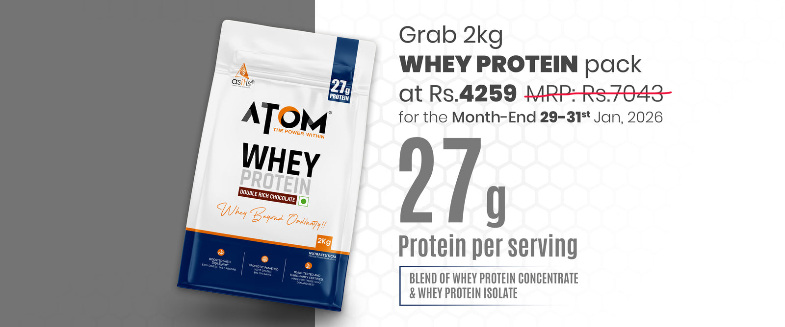 View full detailsTHE ULTIMATE WORKOUT FUEL: ATOM Nitro Whey with Creasure® is your all-in-one power formula featuring ultra-fast Whey Protein Concentrate, Whey Prot...