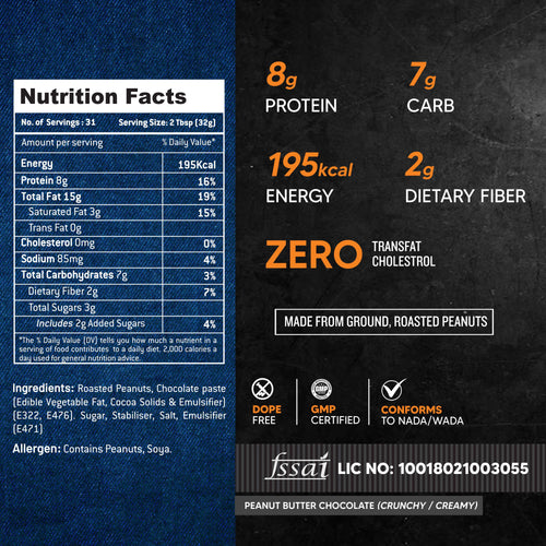 The 1Kg pack of ATOM Peanut butter offers 31 servings of 32g each.
