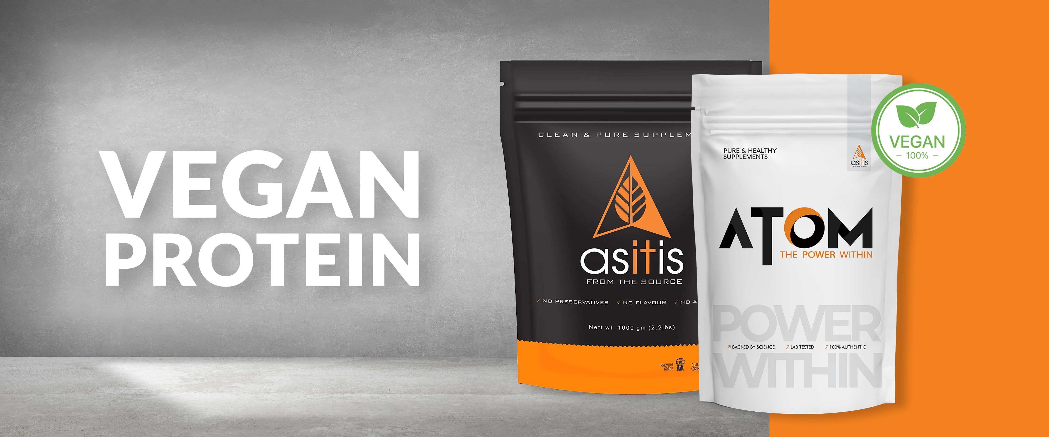 AS-IT-IS Nutrition offers a variety of plant protein powders, including Pea Protein Isolate, Soy Protein Isolate, Brown Rice Protein, Peanut Butter Protein, ATOM Pea Protein, ATOM Plant Protein, ATOM Plant Protein complex, and ATOM Roti Protein.