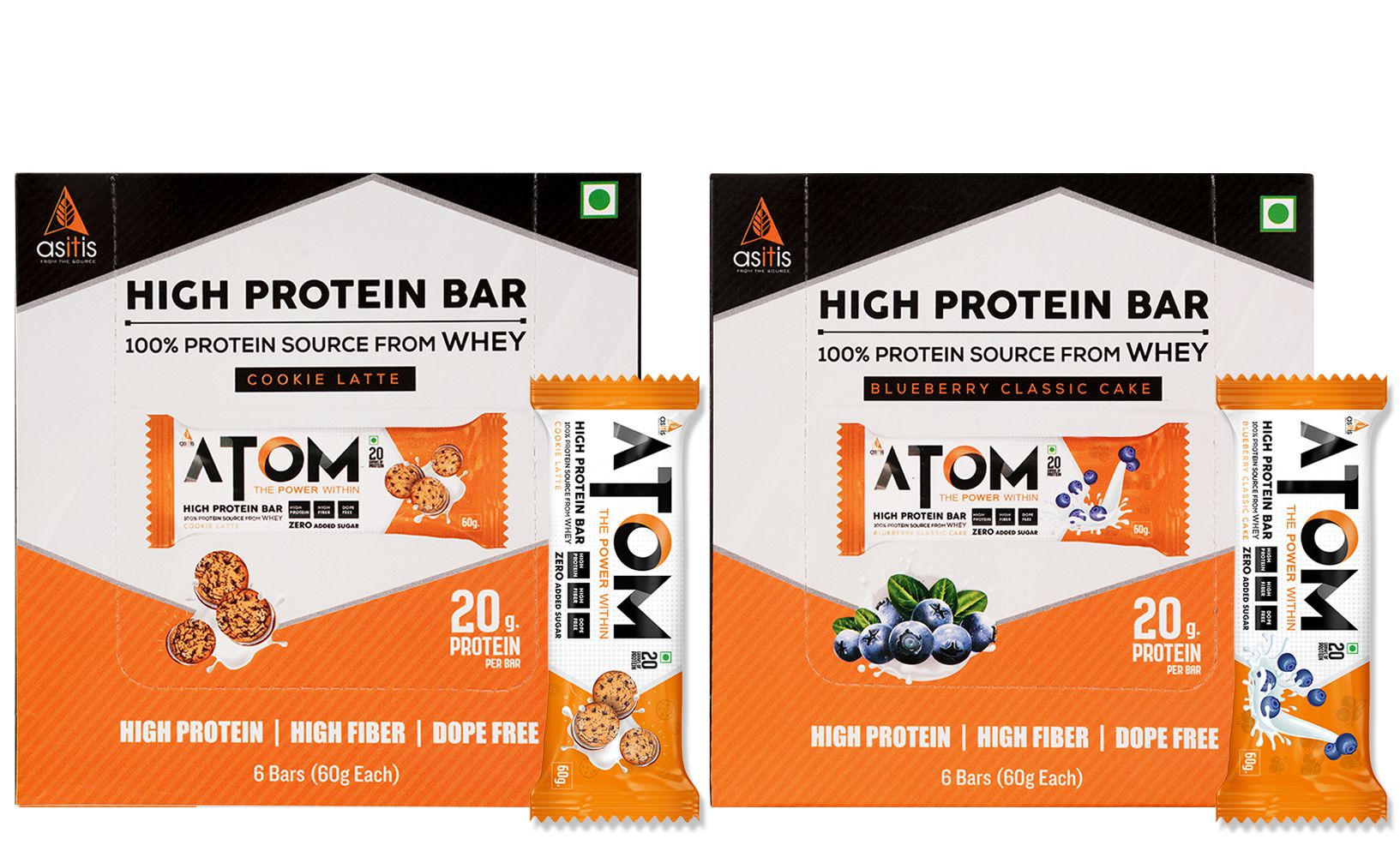 Yes, ATOM High Protein Bar comes in 2 delightful flavours, blueberry classic cake, and cookie latte.